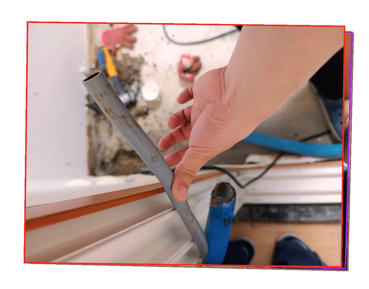 배관 내외부를 면밀히 살펴본 끝에 온수 배관의 부식 에서 지속적인 물 유출이 확인되었습니다.