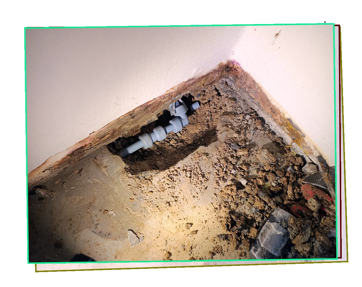 내부 배관을 점검한 결과 배관 나사산 부위의 풀림 에서 누수가 시작되었음을 확인했습니다.