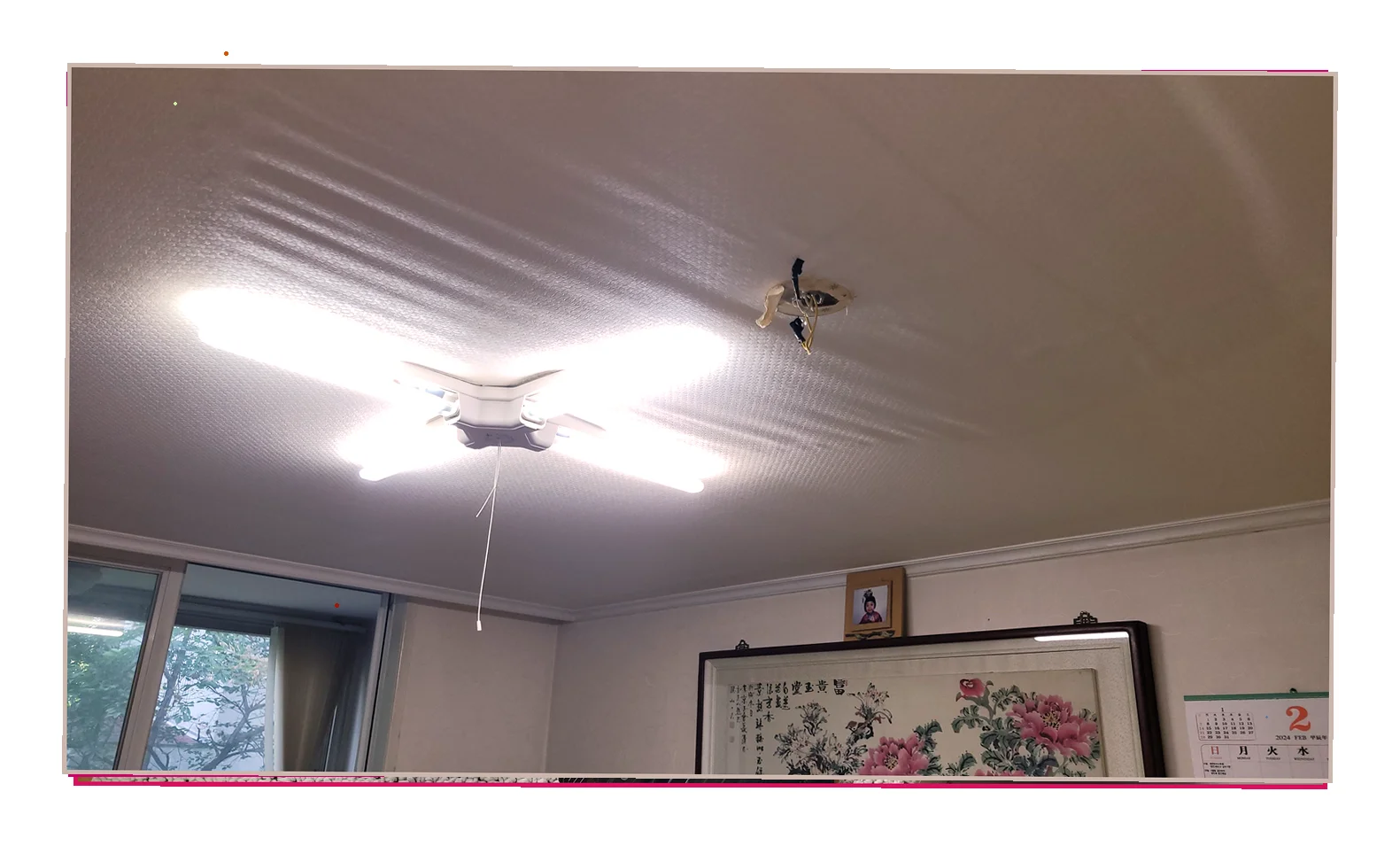 천장 도배지가 처지는